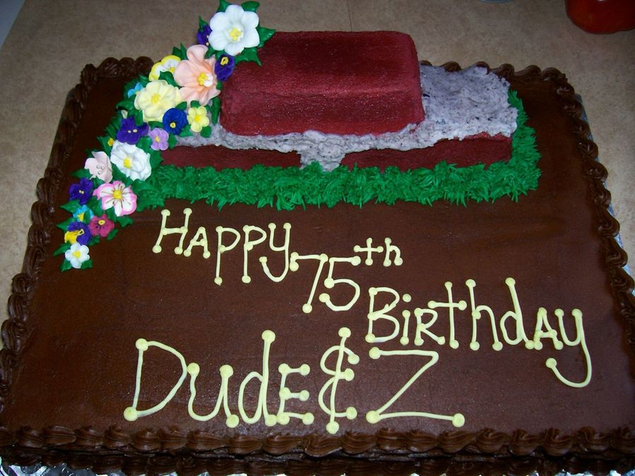 This cake was made for a friend. Her grandfather was a retired brick layer and her grandmother was a gardener. It was there 75th birthday.