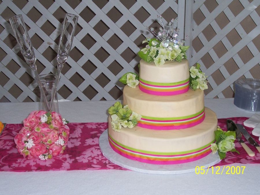 wedding cake 14,10, and 6 inch. ivory buttercream icing, and bavarian cream filling. this was for a co-worker. she loved it.