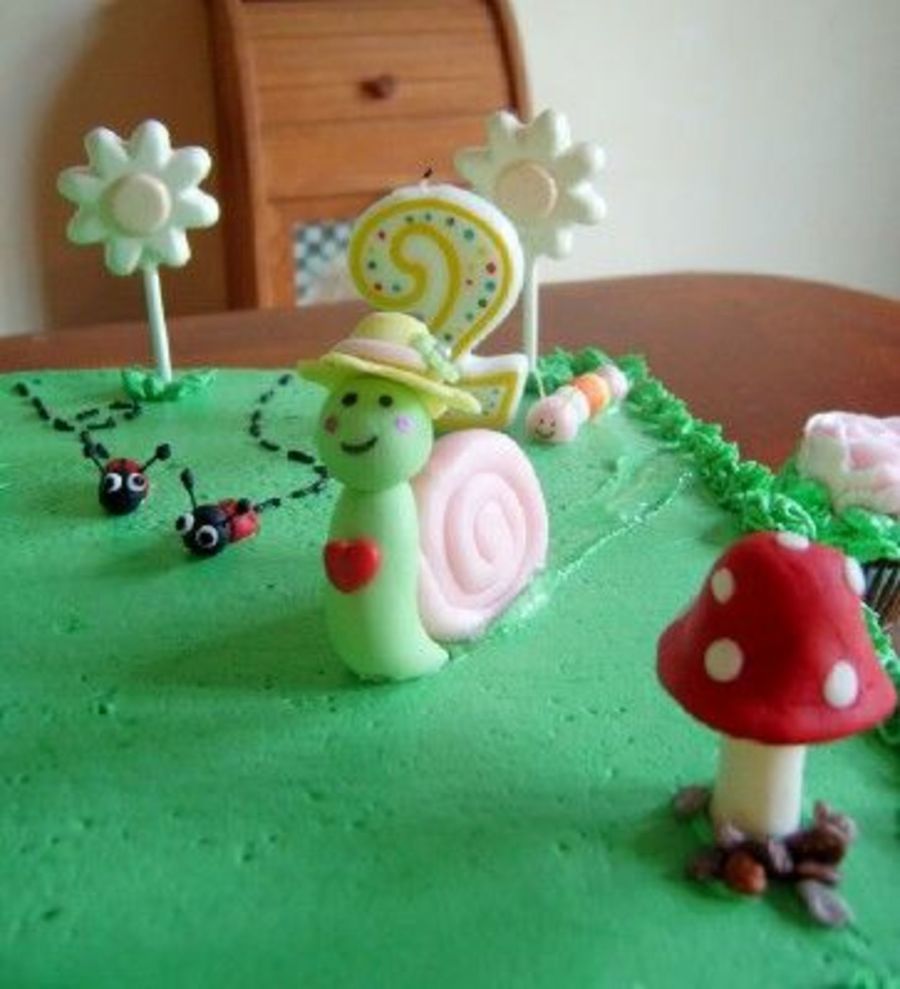 Oh Zamode, I love that little snail! It is too cute! Your bugs are terrific! A perfect cake for a little two-year-old! :princess: