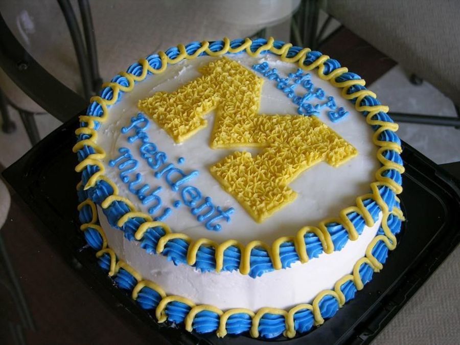 This was actually a birthday cake but I guess the football album fits the theme of the cake best. Chocolate cake with BC made for the U of M Student Government President.