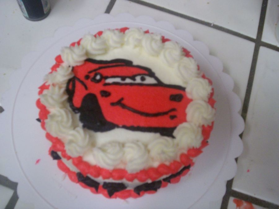 My brother wants a Cars cake for his bday next month, and I wanted to try a FBCT. Well, I didn't want to do it right before his birthday and then mess up his entire cake, so I did this two-color practice cake.