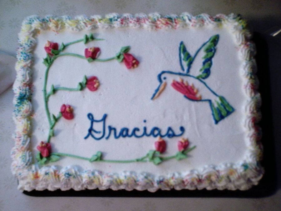 Made the humming bird free hand from a picture I found on the net. I first drew with a tooth pick then came in with icing.