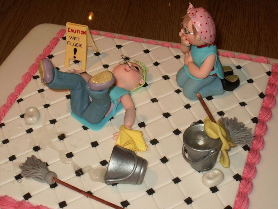 I made this cake for 2 cleaning ladies who turned 60 on the same day. I didn't make them look very clever at their job but it made them laugh so all was well.
