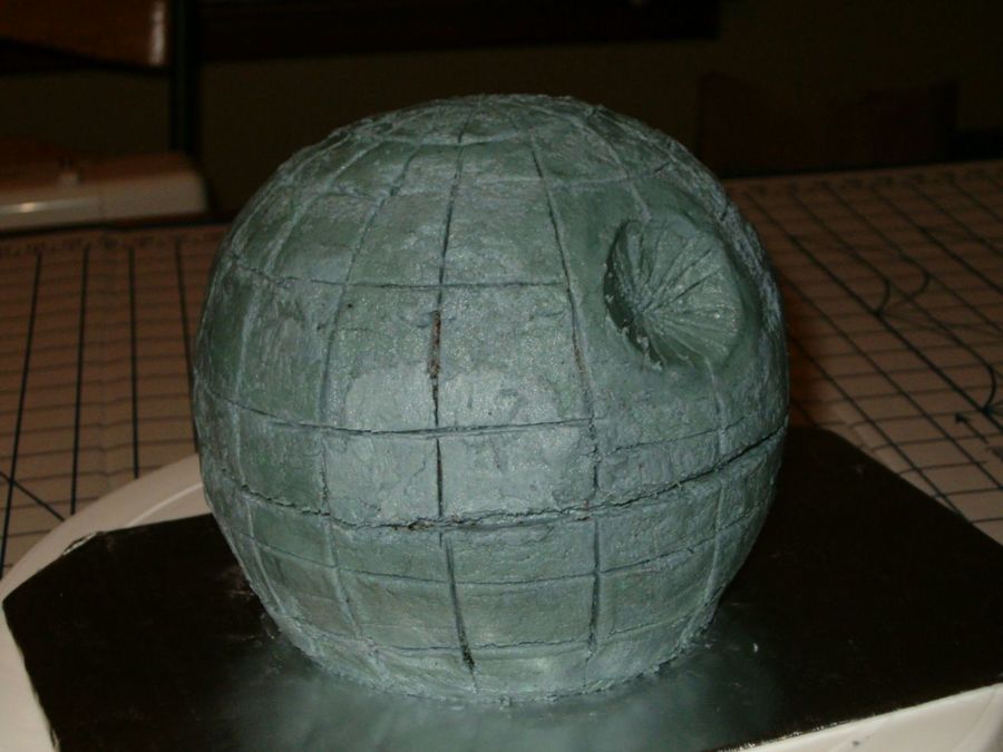 My futur brother-in-law asked me to make a cake to look like the Death Star from Star Wars for his grooms cake. This is my first practice attempt at making this cake. Using the Sports Ball cake pan for the shape, I made a chocolate strawberry cake and flavored the icing strawberry as well.