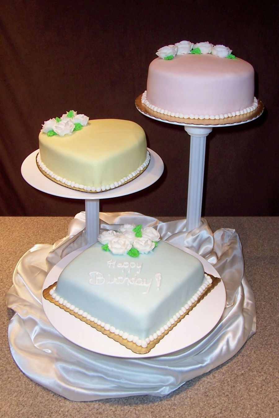 These cakes were done for a customer's mother's 60th birthday - all three cakes were different flavors and different fillings, and she just wanted something very simple and not fancy.