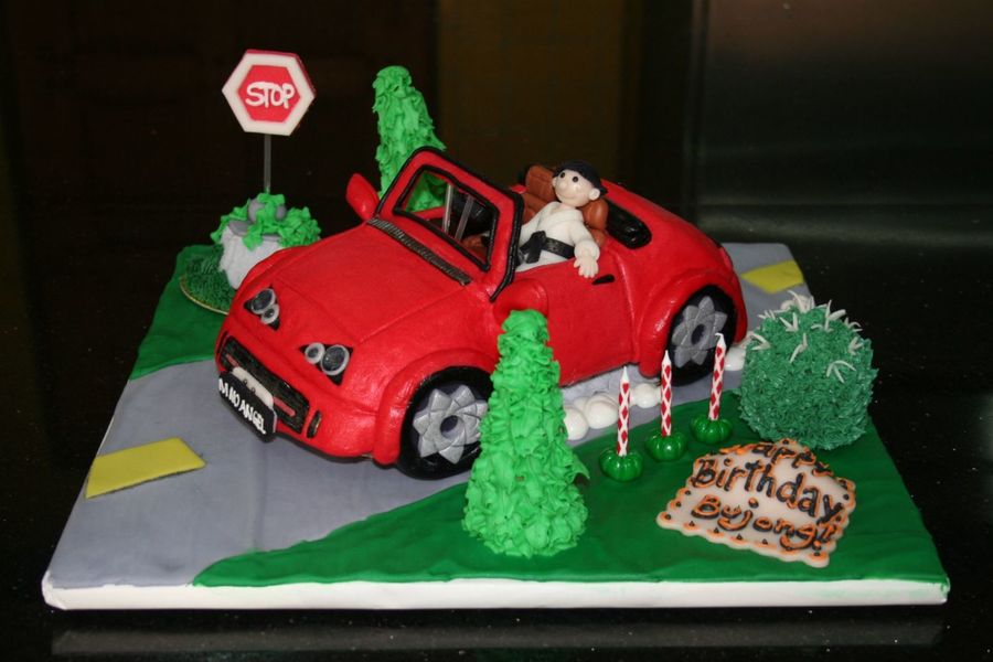 Carved the Cake from a Wilton Cruiser Cake Pan and finished in faux fondant. All other decorations are made from sugar clay. I thought it turned out quite okay.