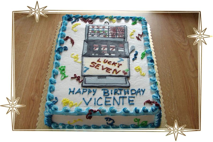 This is a great cake kazoot!!!!! The slot machine looks 3-D! I like what you're doing with your photo borders too =o)