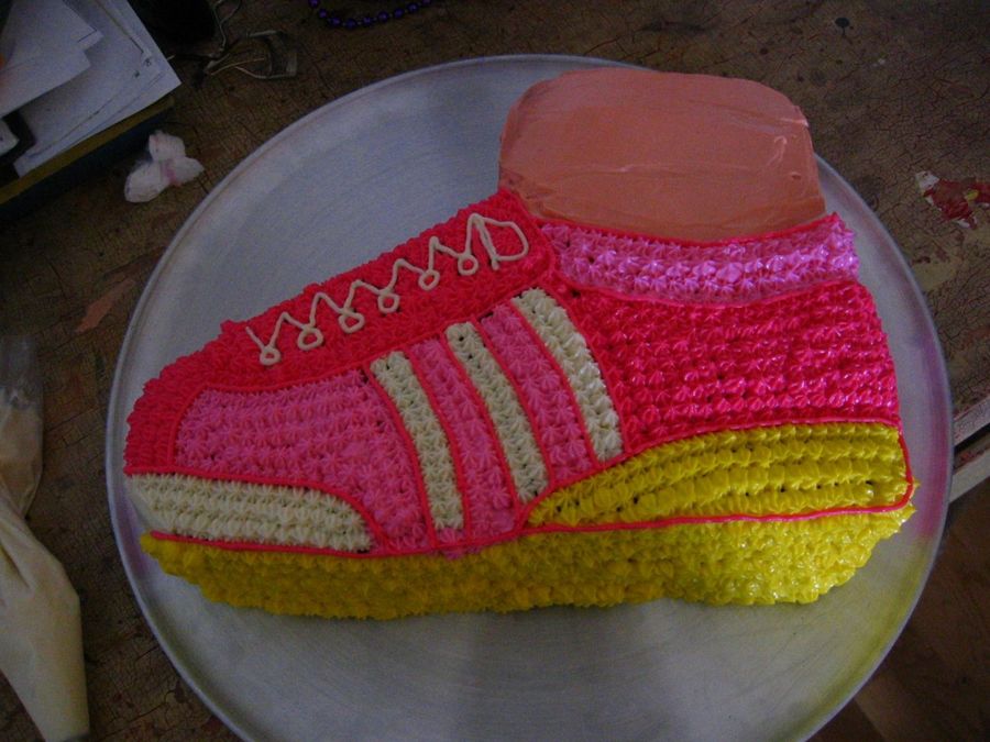 Sneaker cake using Wilton cake pan for my friends birthday. Cream cheese frosting, chocolate cake with raspberry filling. Sort of new at this so I haven't gotten too fancy yet.