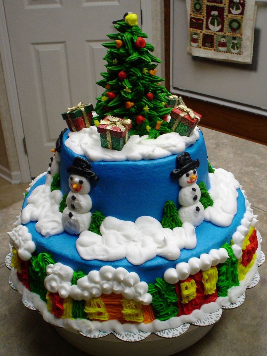 It is buttercream. I did it at a medium consistency and then just piled the snow. The snowmen are just #12 tip with lots of pressure. Thanks for the compliment!!