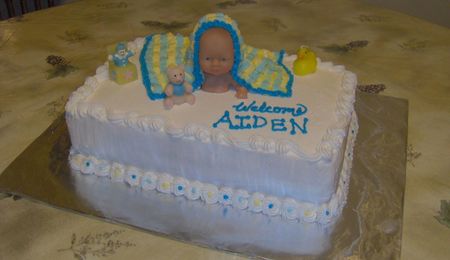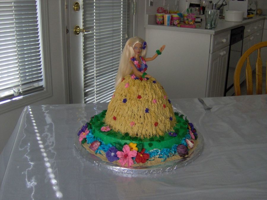 Iced with B/C with Royal icing flowers. Used a full sized "barbie" doll and chocolate seashells.