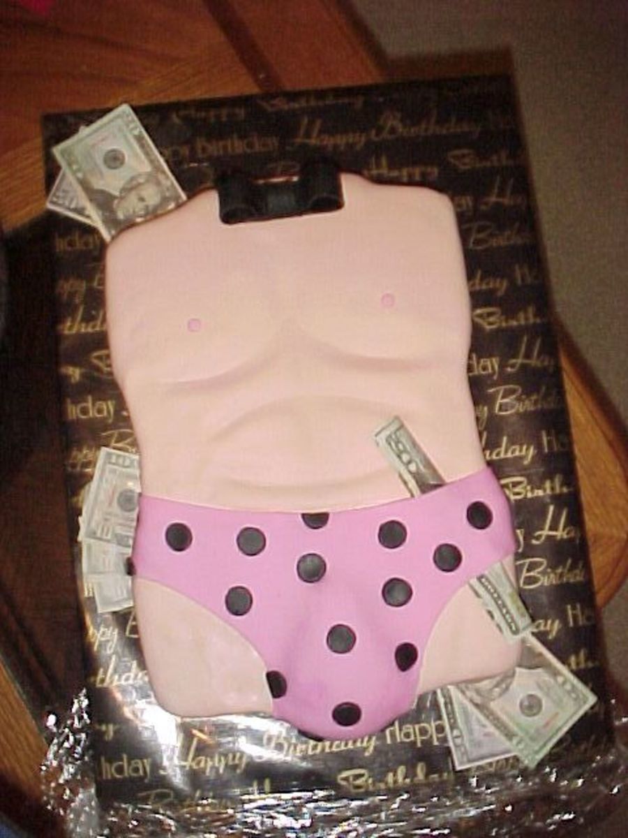 ChrisJ on 26 Jul 2006 , 7:22pm Now THIS is different! Great job! Must be a very confident man to pull off pink speedos! :P