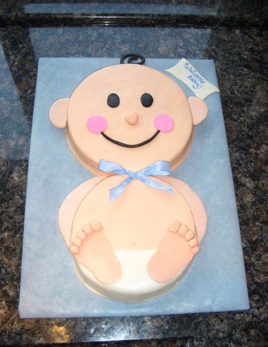 Quick baby shower cake that I made for one of my co-workers. I got the idea from the 2004 Wilton Yearbook. The Mother-to-be is not a big fondant fan so I used buttercream for the body and fondant for the feet, toes, diaper and other accents. The bow is silk. The cake is fresh strawberry.