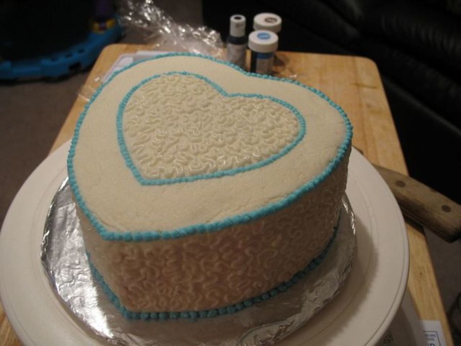 My first time trying to do Cornelli lace. Red velvet cake with cream cheese frosting.