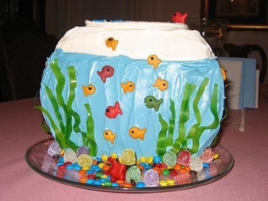 Awww how cute! I love the Goldfish cracker idea! How did you get the cake in that shape?