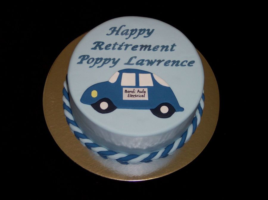 9 inch double decker caramel mud cake with caramel ganache. Covered in fondx. Rope and car are also fondant. Wording is gumpaste. Made for a gentleman who has sold his business and is going into retirement.