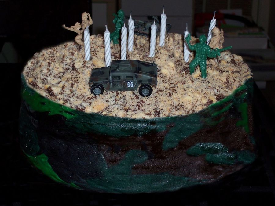 This cake has fondant around the sides and then crushed cookies on the top to make it look like sand and dirt. The fondant didn't work so well this time around but i was happy with the results.