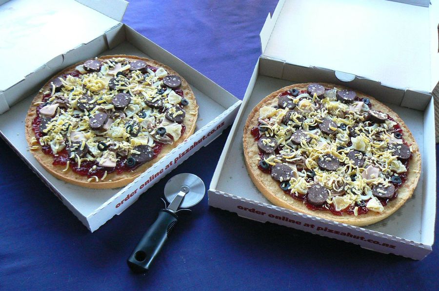 Made for my son who just turned 14. I tried to do something that would appeal to teenage apetites! Madiera cake, fondant onions, olives and mushrooms, chocolate salami, real crystalised pineapple and yellow coloured grated chocolate 'cheese' Decorated mostly by my 8 and 12 year old daughters!