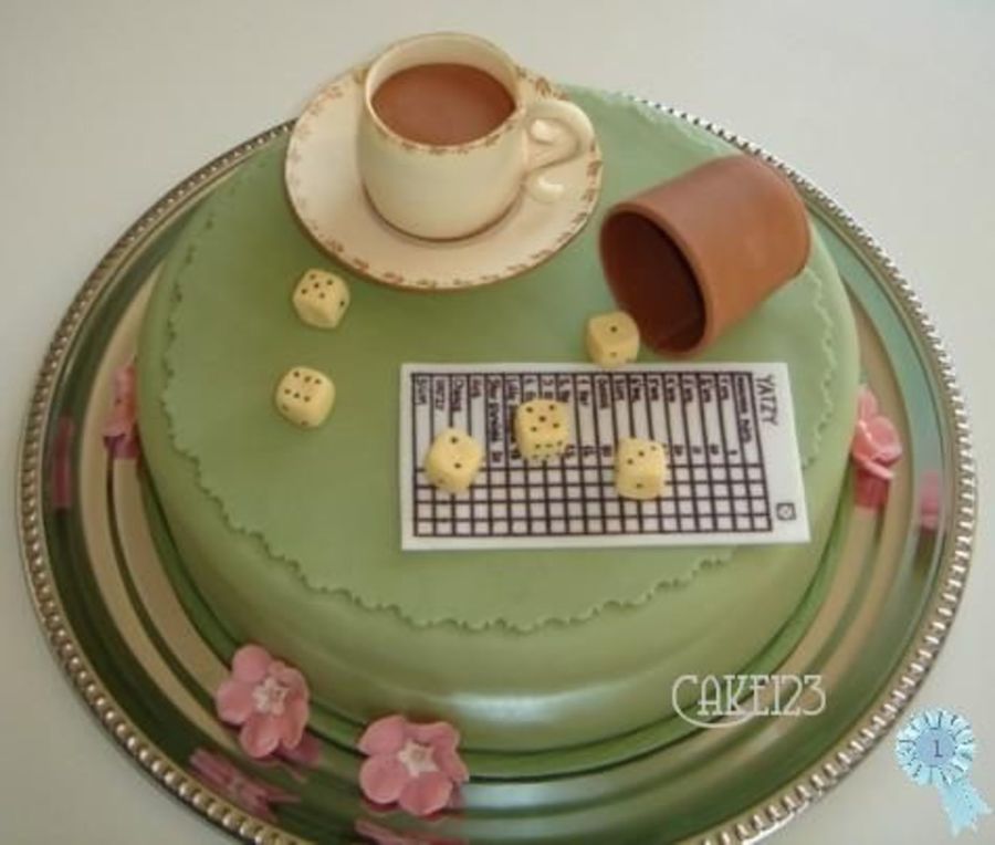 knew it was a yatzee cake right away.....great idea!...took me back to my childhood!