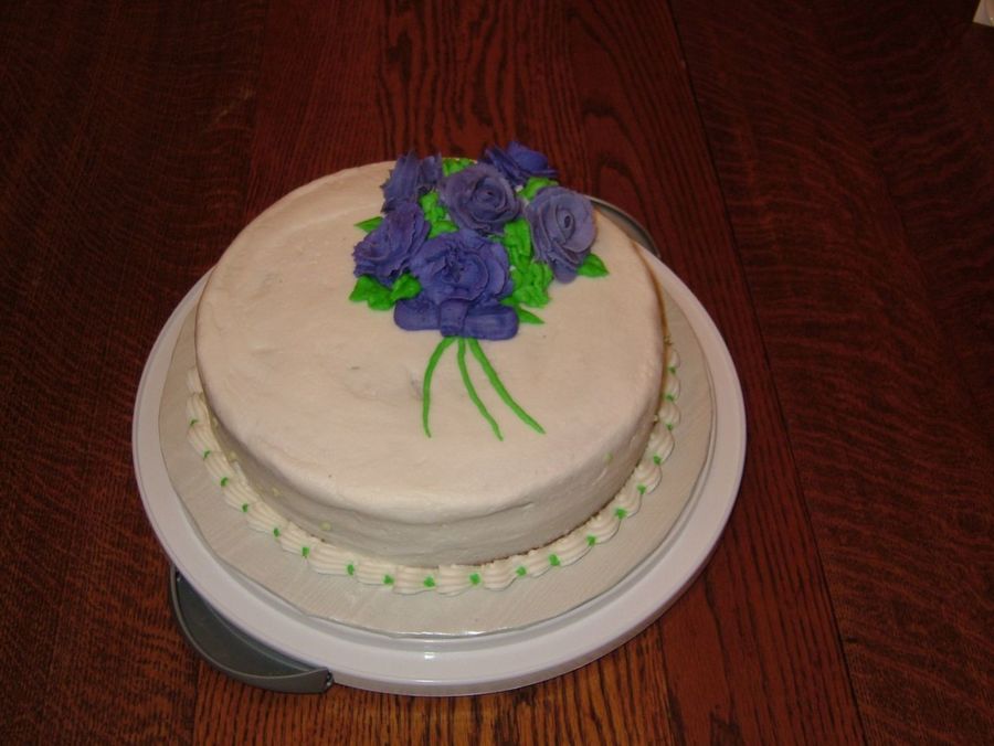 This did not turn out as well as I had hoped. I had problems with making the roses and also the bows. I will probably try to remake this one again just to try and make it better. This is 2 10" yellow cakes.