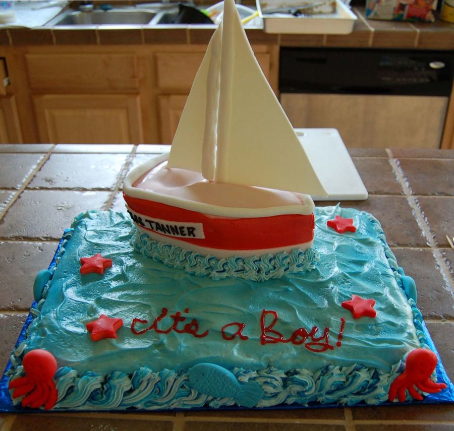I did this cake for a friends Baby shower. The theme was sail boats.