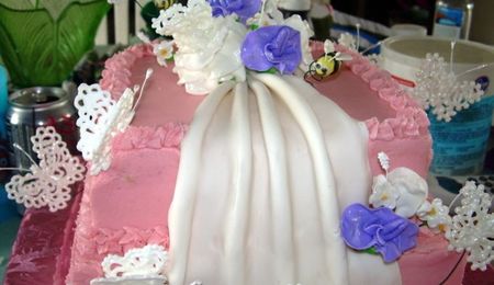 This was a cake done for the kids at church. Cola cake, BC icing with mixed berry cream filling. Flowers are fondant.