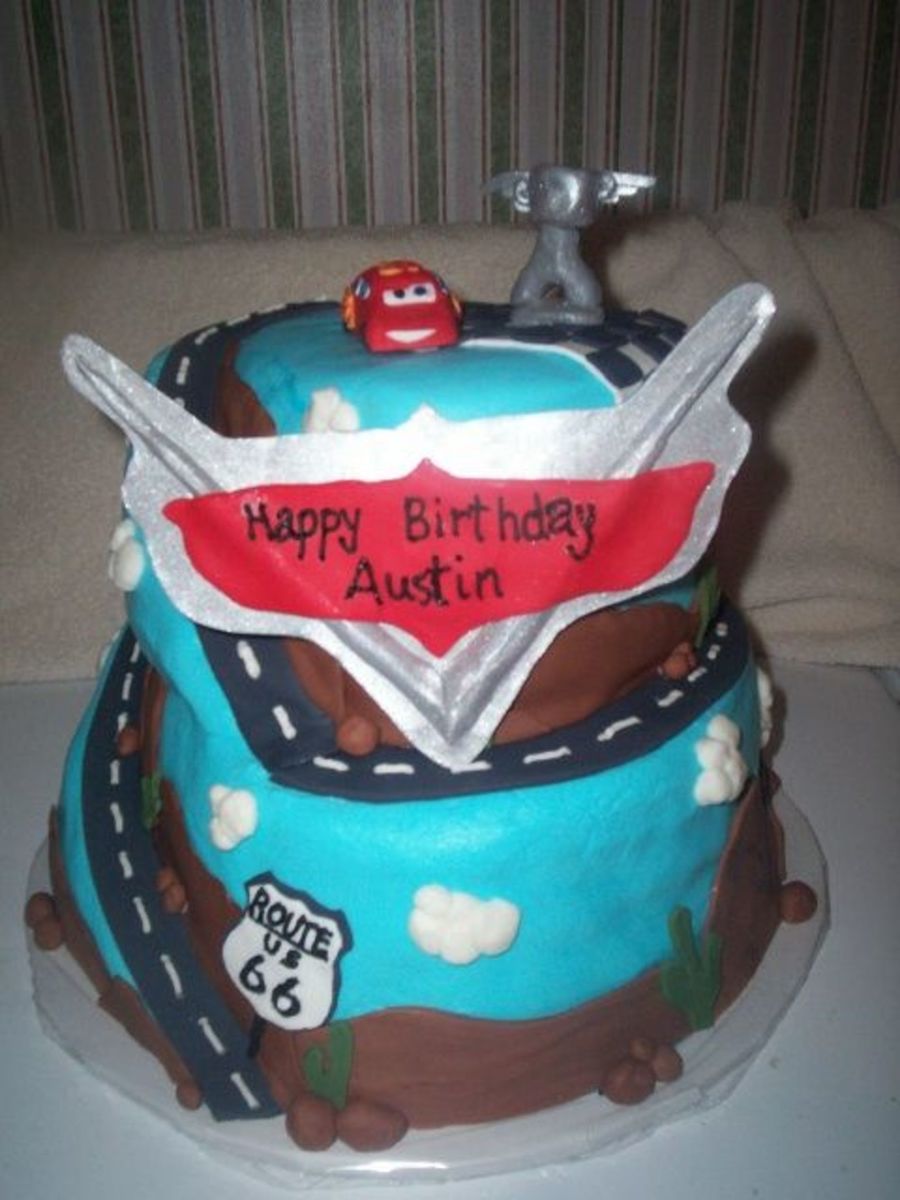 Very cute! I like McQueen on top! I've been wanting to do a cake with the road all the way around - I think yours turned out very nice. What size pans did you use? What size would you do next time?