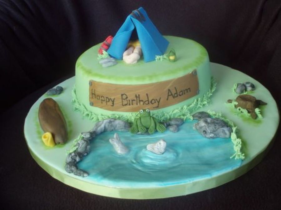 Birthday cake for my son who is going canoe camping into the wilds with my other son and a bunch of friends for their yearly trip...tried to make his cake depict the trip..left out the bear (thought it was a bad omen to put one in...lol!!!) Maisie Parrish cake was inspiration for this!! Thanks for looking