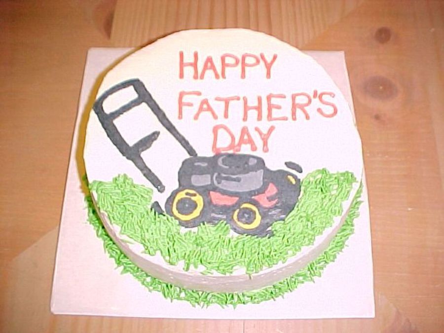 Chocolate cake with buttercream icing. The lawnmower is a buttercream transfer and I did pullout grass around it.