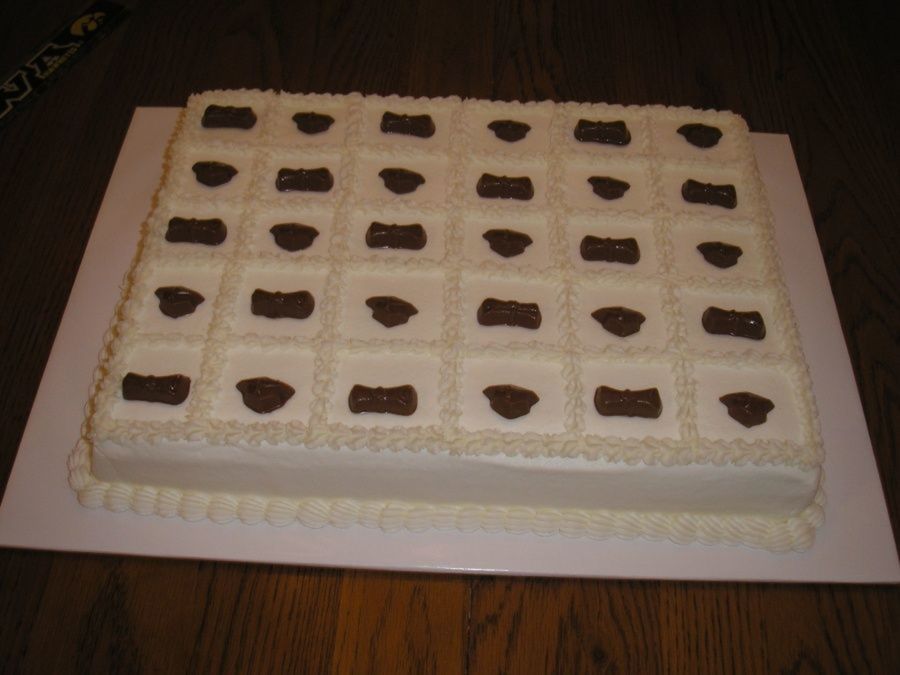 Wow, This is exactly the cake my friend wants me to make for her DD's graduation party. I also plan on making a bunch of cupcakes with same types of chocolate. Glad to see people think alike! Good Luck