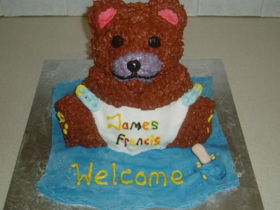 Chocolate 3D teddy bear sitting on fondant blanket