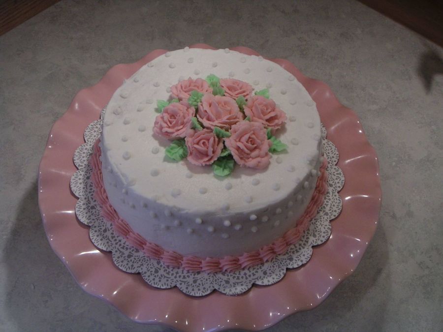 wow..beautiful cake! Your roses look good...also, I love your cake plate!