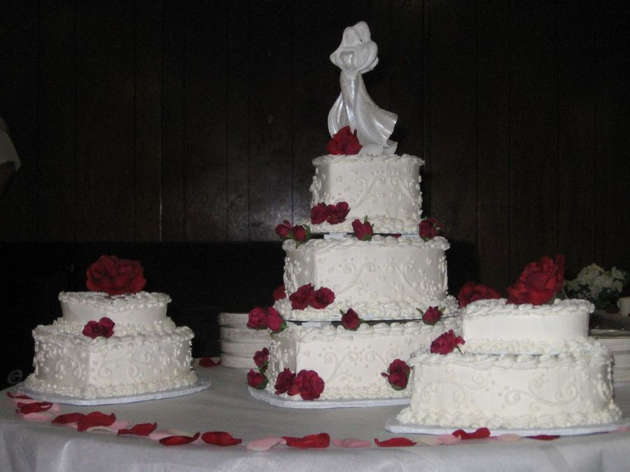 Your cakes look lovely! I love the scross work, the rose petals, and the roses....just lovely!
