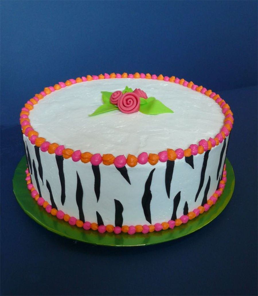 This is my attempt at a fabulous cake posted by CC member dailey. All buttercream except the zebra stripes and flowers on top.