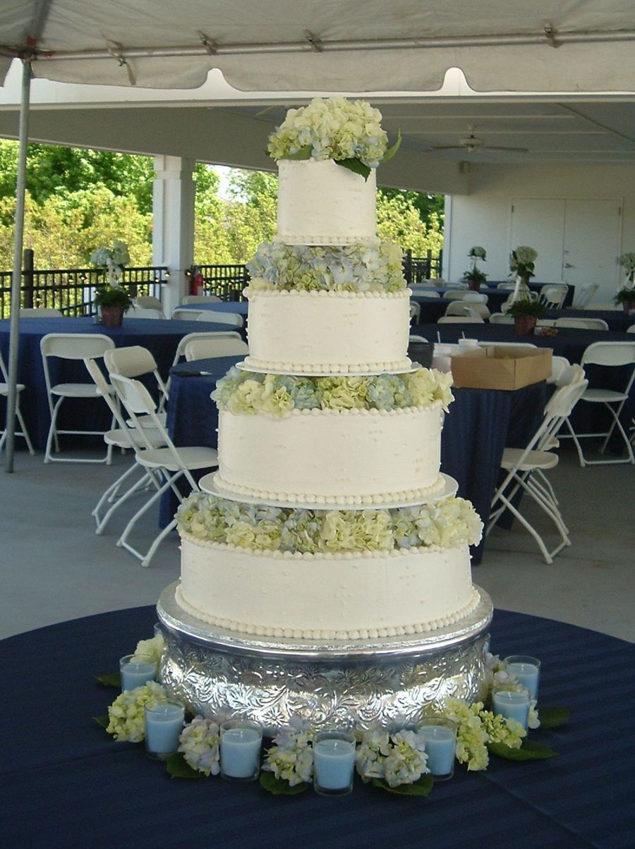 FAbulous! I'm doing a similar cake in a couple of weeks. How did you prevent the hydrangeas from messing up the icing on the layer underneath?