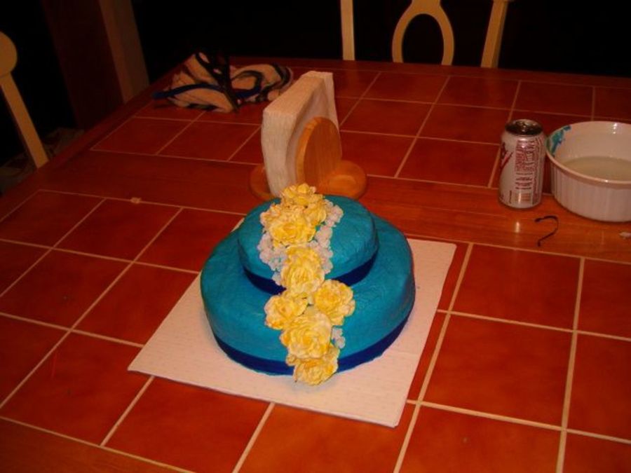 This was a retirement cake I made. Fake flowers...not good enough to do edible flowers.