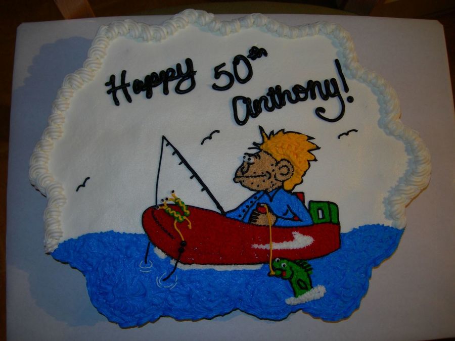 For a co-worker who's husband was turning 50 and loves fishing... I waited till the last minute to do this cause I was nervous about using my projector.. I think it turned out ok though...I've learned not to pick out a picture with so much small detail ... Thanks for looking!