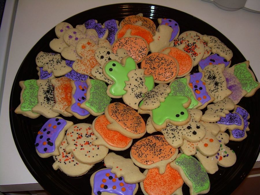basic sugar cookie with royal icing. new to the site and uploading all my photos. took them to my son's halloween party for school