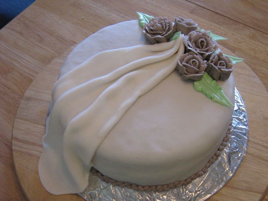 Not really a first time cake from a class as I am teaching myself, but this was my first time using real fondant (DH and friends don't seem to like MMF) and first practice buttercream roses. Definately need more practice for both fondant and roses! Can't seem to get it right!