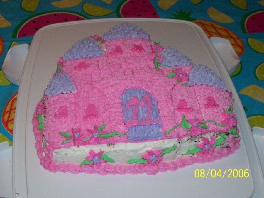 This was a cake I made for my step-daughter. It was my first cake since taking the wilton course I class as well as my first shaped cake ever. It's a chocolate cake w/ BC icing. Couldn't get all the crumbs covered, but will work on that technique. I also don't think the numbers on the door look like an "11" kind of looks odd. Still new to this, but don't think it's a total shamble :)