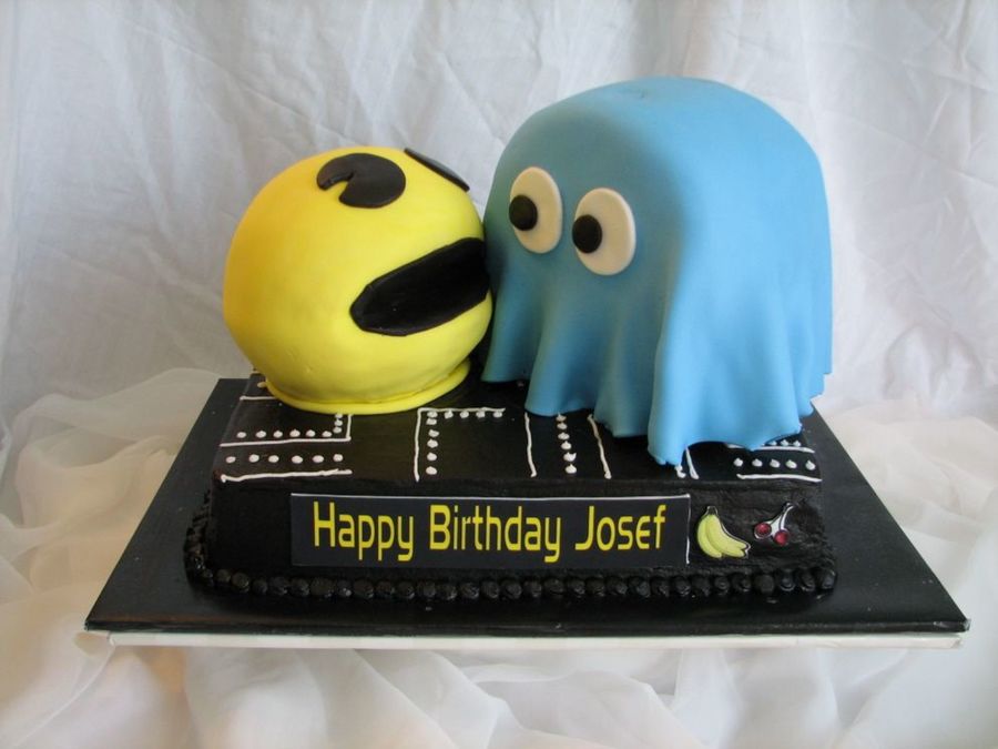 sheet cake is iced in BC, pacman and the ghost are covered in fondant! This was a HUGE hit w/all the kids at the party!! Thanks to everyone for the help w/the ghost. I ended up using an 8" round and cutting off one of the round ends on the bottom and sides and then standing it up. Just iced in BC and draped fondant over it! Was soooo easy!!