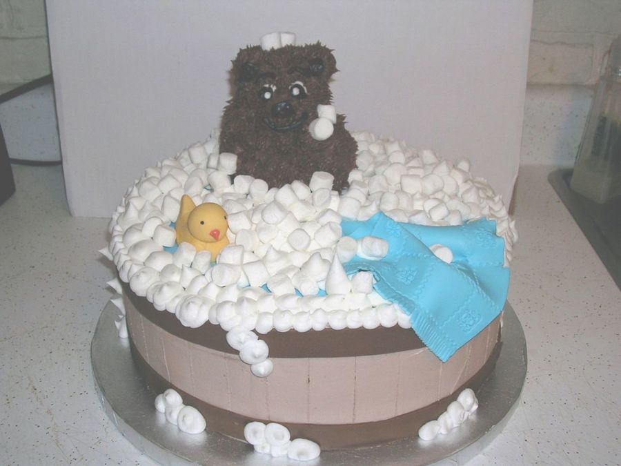 I saw a few of these on the board and tried my own version. I did everything in buttercream except the brown strips, the duck and the towel were fondant and marshmellows with white buttecream bubbles. Also, I want to thank everyone for posting pics. I not creative enought to come up with original ideas but can use parts of others to get me started. A big tahnks to everyone!!