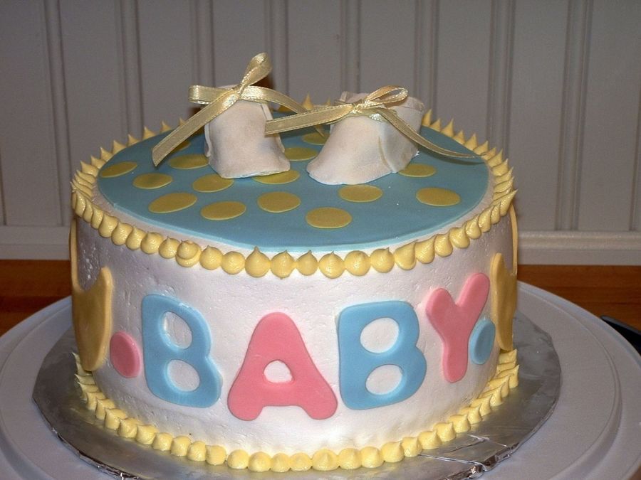 Chocolate and vanilla pound cakes with choc buttercream filling, topped with gumpaste booties for a male baby shower.
