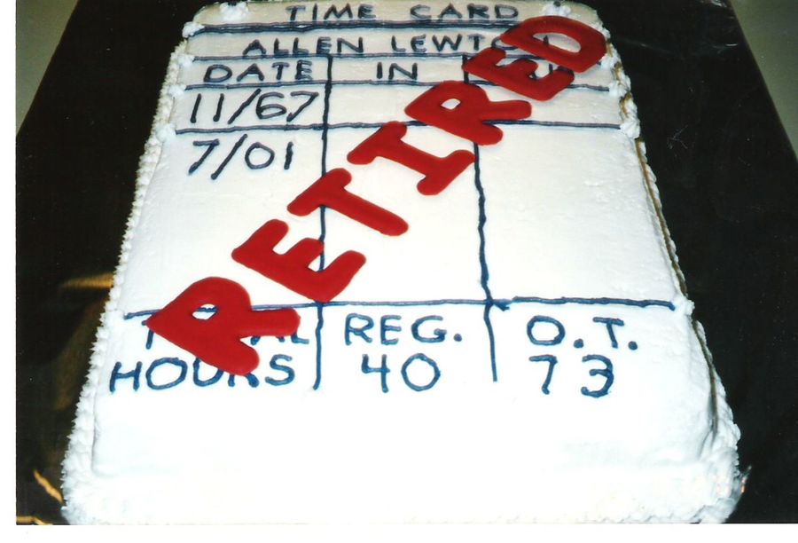 I made this for my Workaholic Dad who finally retired in 2001, and he still works! One of my very first cakes I did the Red Retired in color- flow. This was when I still used the Wilton Icing Recipe. YUK!
