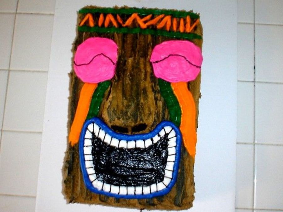This is a tiki cake I did for my nephews 15th birthday. Chocolate cake with all buttercream.