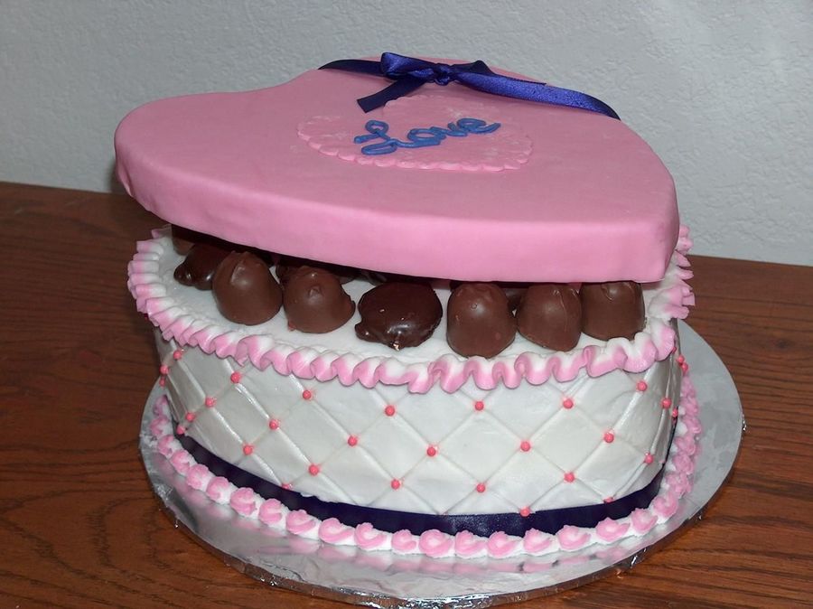 Today is my anniversary, so I made this cake for DH and I. Top is covered with fondant. It is choc cake with bc frosting with yummy chocolates.