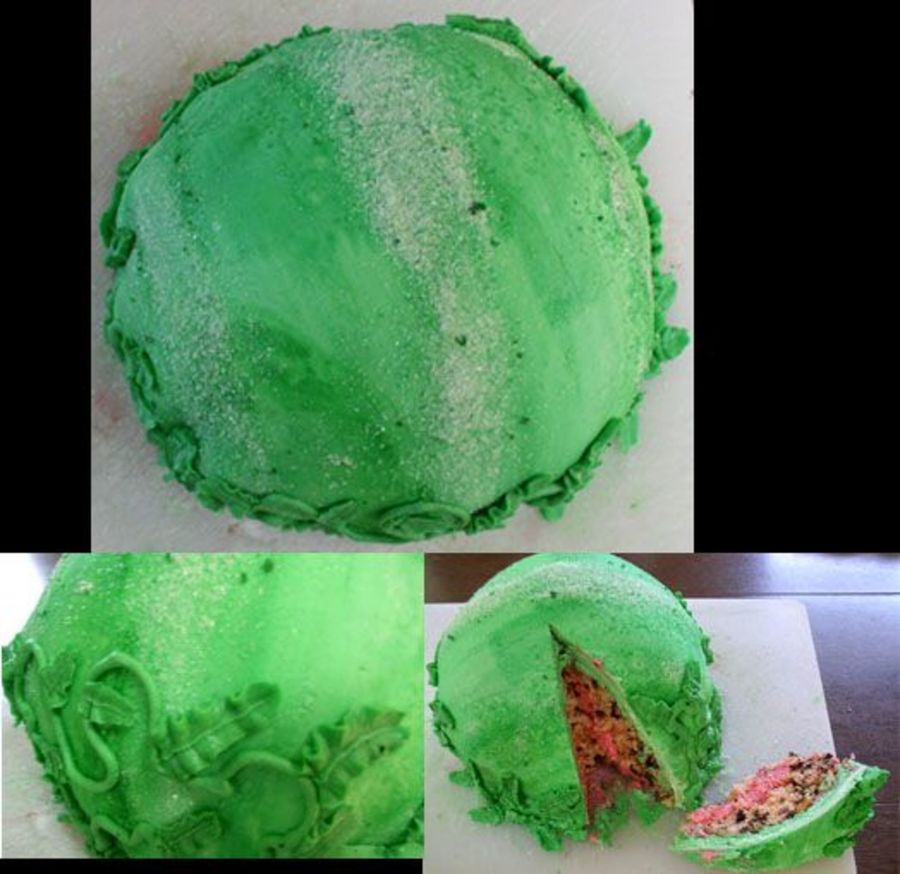 A watermelon shaped cake which was also watermelon flavored. This was my first 3D cake as well as my first try with fondant. It was a blast! Thanks to Cryssi for the idea :)