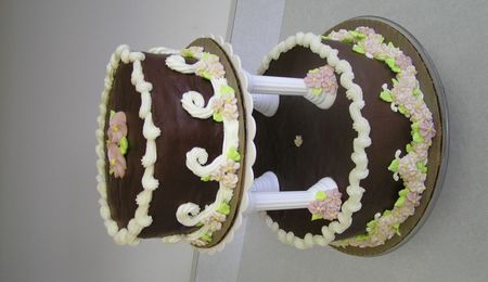 Very nice roses, and such a great contrast with the deep rich chocolate. The pastels look really delicate and the border is a very clever idea.