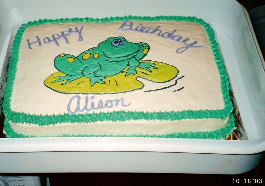 ChrisJ on 11 Aug 2006 , 4:16am Too cute! My 4 yo granddaughter just announced her love of frogs and she would just LOVE this cake!