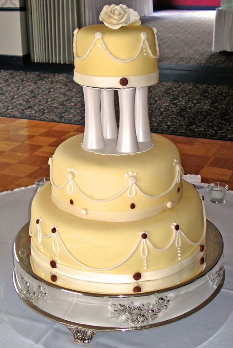 HeatherDawn on 28 May 2007 , 3:39pm Your cake is so very pretty! Sorry I have no tips for the swags, you did a great job on them though! I can't do swags great, so I just don't. LOL