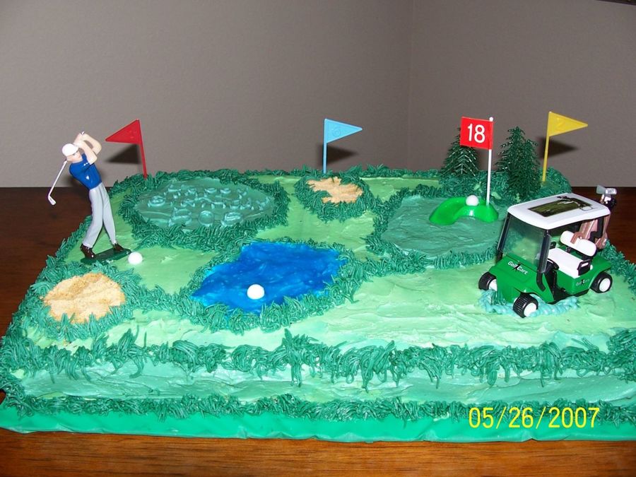 Golf course cake for my boss' husband's 40th bday! Love the grass/hair tip.This is only my 5th cake ever so I'm actually pretty pleased! Any advice is welcomed :)